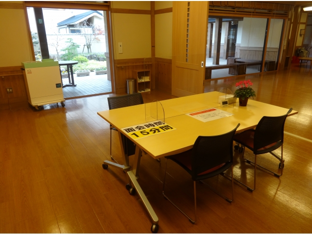 愛厚ホーム設楽苑では、新型コロナウイルス感染症の新規感染者数が減少し落ち着いていることと、行政における社会生活の制限も徐々に緩和されていることを受け、11月10日(水)から面会の制限を一部緩和し、窓越し面会から直接面会へ変更して行っております。
