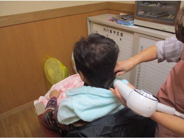 愛厚ホーム設楽苑では、毎月地元の理髪店、美容室の協力を得て、理美容サービスを提供しています。 今日は美容の日、(新城市大海)東京屋美容室さんが来てくれました。 希望を聞きながらカットと毛染めを行ってもらい、きれいになった姿に入居者さまも満足された様子でした。いくつになっても身だしなみは大切ですね。 10年ほどご協力をいただいている東京屋美容室の美容師さん。いつもありがとうございます。これからもよろしくお願いいたします。