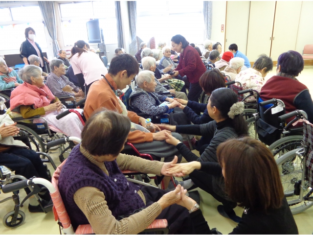 平成26年2月19日(水)日東保育園 園長様はじめ、父母の会様11名にご来苑いただき、歌や紙芝居、ハンドベルのご披露、手遊びなどによる交流会が開かれました。