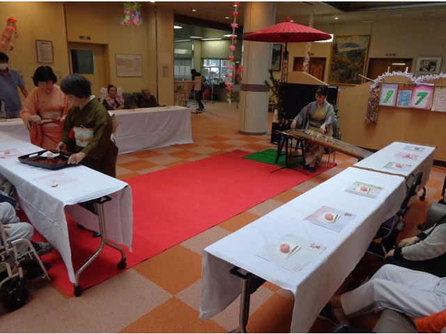 大正琴の美しい音色に酔いながら、和菓子とお抹茶を堪能されました。