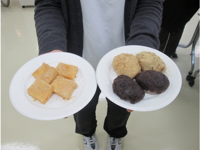 味は、きな粉とあんこの2種類で、普通の餅の他に粥餅と牛乳で作ったミルク餅と、それぞれ利用者さんに合ったものが用意されました。参加された利用者様からは、「昔は良く家でついたもんだ」「懐かしい」「また食べたい!」と大好評でした!!