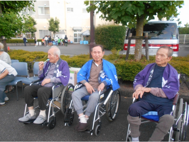 利用者様もお昼から盆踊りの練習、夕方からは法被をきて盆踊りに参加し、皆様とても楽しんでみえました。