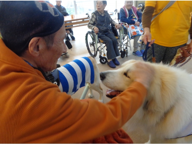 1/18(月)にNPO法人しっぽいっぽの会から支援犬がきてくれました!年2回あるアニマルセラピーですが、毎回人懐っこい支援犬に利用者さんも癒されています。小さいチワワは利用者さん皆さんに抱っこしてもらいました!みなさんとてもよい笑顔で、自宅で飼っていた犬を思い出す方もたくさんみえました。70キロの犬には怖がってしまうかたも、、!アニマルセラピーをすると、本当に動物の力はすごいと感じます。次は来年度の開催になりますが、待ち遠しいです😊