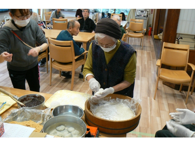 東郷庵では新年の準備として、12月8日と14日に東郷庵餅つき大会を行い、約20名の方が参加されました。