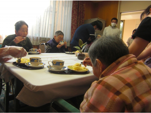 天候があまりよくなく、散歩ができませんでしたが、4月誕生者のご利用者様と喫茶タイムを行いました。みなさんの笑顔がすてきです。