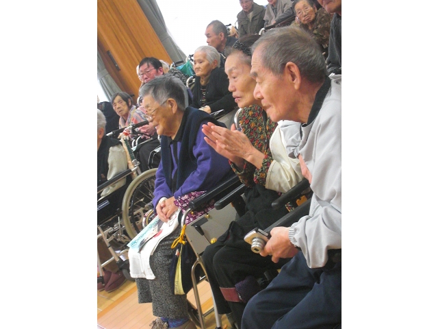10月31日(土)に『家族との集い』を開催しました。衣類販売・福祉用具展示販売・菓子販売など各コーナーもにぎわうことができました。昼食はご家族の方と一緒に食べて、いつもと違う雰囲気で楽しい食事となりました。午後からは“梓 夕子さんの歌謡ショー”を楽しみました。大勢参加していただき、ありがとうございました。