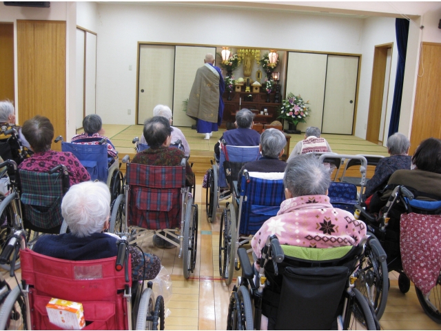 春の彼岸法要を行いました。ご住職の声で、故人のお名前を聞くと、さまざまな思い出が思い出されます。いつもは自分からお話しされたり動くことが少ない利用者様も、手を合わせて仏壇を見つめておられました。一人一人にさまざまな想いが巡っていたように思います。昼食はおはぎでした(写真がないのが残念!)。お参りの後は、甘いおはぎに舌鼓の春の一日でした。