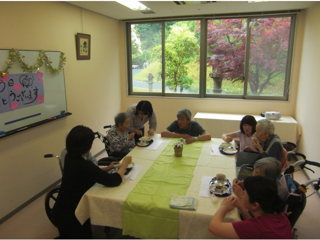 ケーキが目の前にあると、皆さんも笑顔に。いつもはゆっくり召し上がる方も、ぺろっと召し上がりました!中には、「もうないの?」とお皿を見つめる方も・・・。