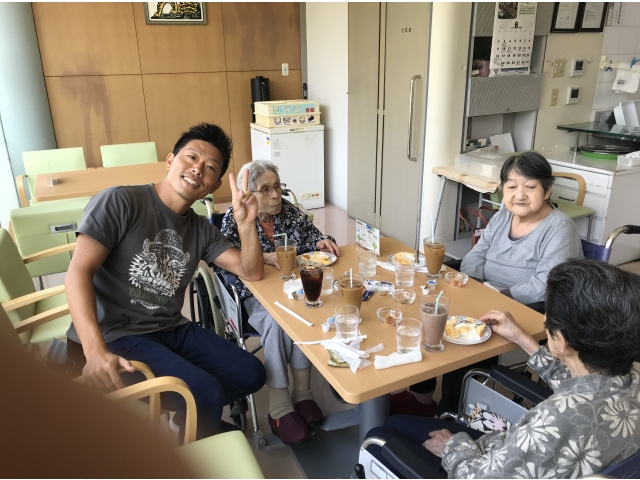 ケーキセットはケーキの他にタコ焼き等を頼む事ができ、ケーキではなくタコ焼きを頼む方もいました。「(タコ焼き)美味しかったよ」「(ケーキ)甘すぎなくて良いね」と言う声が聞こえ、とても喜んでいました。