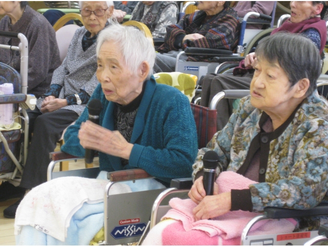令和元年11月21日(木) 愛厚ホーム豊川苑では、カラオケ大会が開催されました。 日頃の練習の成果を発揮し11名の方が自慢ののどを披露され、それにつられて飛び入り参加の利用者さまも見えるほど、大変盛り上がりました。 歌を歌いストレス発散!また来年のカラオケ大会でも歌うぞ~!