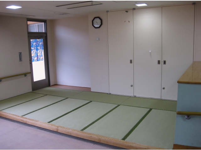 豊川苑には1階、2階ともに畳コーナーがあります。今までは荷物を置く以外、ほとんど活用されていなかったスペースに、職員から寄付していただいた「こたつ」を置き、椅子の生活に慣れていない利用者の方々にくつろぎ空間を設けることとしました。