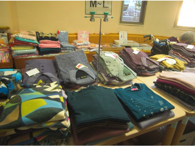 衣類販売ではこれから寒い季節になるので、温かい服を購入したり、利用者様に手を取って選んでもらい、購入のお手伝いを行いました。