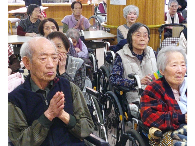 11月22日14時から1階2階利用者様と職員希望者が自慢の歌を披露してくれました。一緒に口ずさんでいる方もたくさんみえました。リズムにのって手拍子したり応援も盛り上がり、楽しい秋の一日となりました。