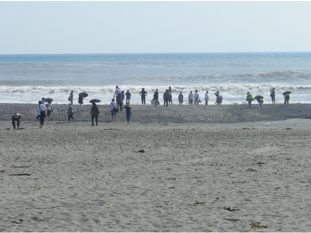 工場見学が終わった後、みなさんで一緒に昼食をとり、茶畑で集合写真を撮ってから、日本三大砂丘の一つである中田島砂丘へ向かいました。