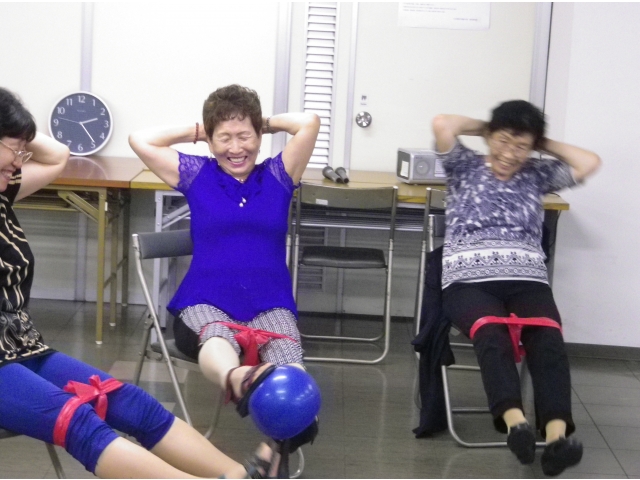 今回は足でボールを運ぶトレーニングを初体験し、体をよじって運ぶ姿に、皆さんの笑いが絶えませんでした。